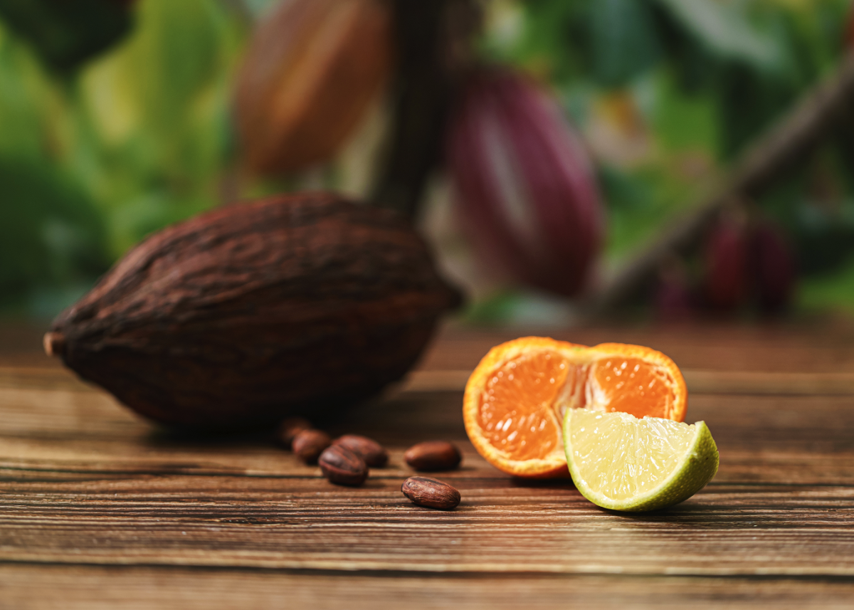 果汁をチョコレートに直接加えるよりも、奥深く、自然なで爽やかな柑橘の香りが広がります。