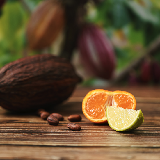 フルーティーな香り高さが特徴のインドネシア産カカオと、ライム・みかんの酸味が合わさったパワフルな風味をお楽しみください。