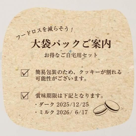 【送料込・ご自宅用お得パック】カカオサンドクッキー(20枚大袋/ダーク15枚・ミルク5枚)【sold out】